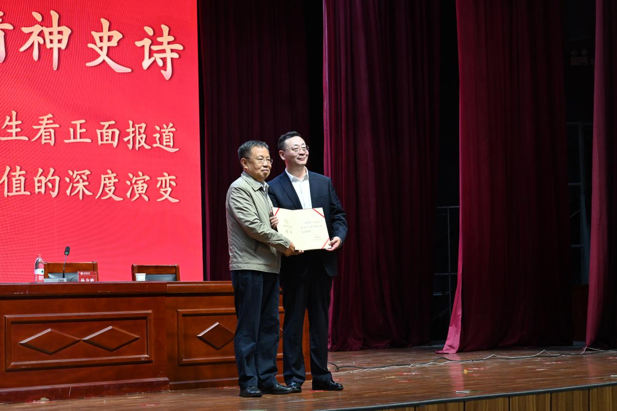 报告会后,孙金岭老师向母校捐赠了《直问中国电视人》《新闻背后的新闻》《田家父子》《中国户口》《那年花开遇见你》《郧阳之光》等专著和文学作品。师生们纷纷表示,孙金岭老师的报告,不仅是对“一部中国人的年度精神史诗”这句标题语的一次全新解读和呈现,更是对中国精神文化的一次深度挖掘和传播。也使同学们得以重新审视和欣赏中国精神,坚定正确信仰与奋斗方向,对于同学们精神的磨炼和价值观的塑造具有不凡意义。