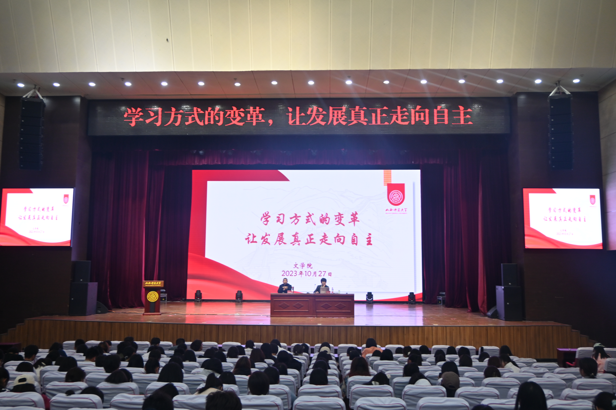 10月27日下午,best365官网红烛讲堂邀请山西省太原市尖草坪区第一中学书记、董事长卢文青在科学会堂报告厅作了题为“学习方式的变革,让发展真正走向自主”的讲座,副经理李晓敏主持。