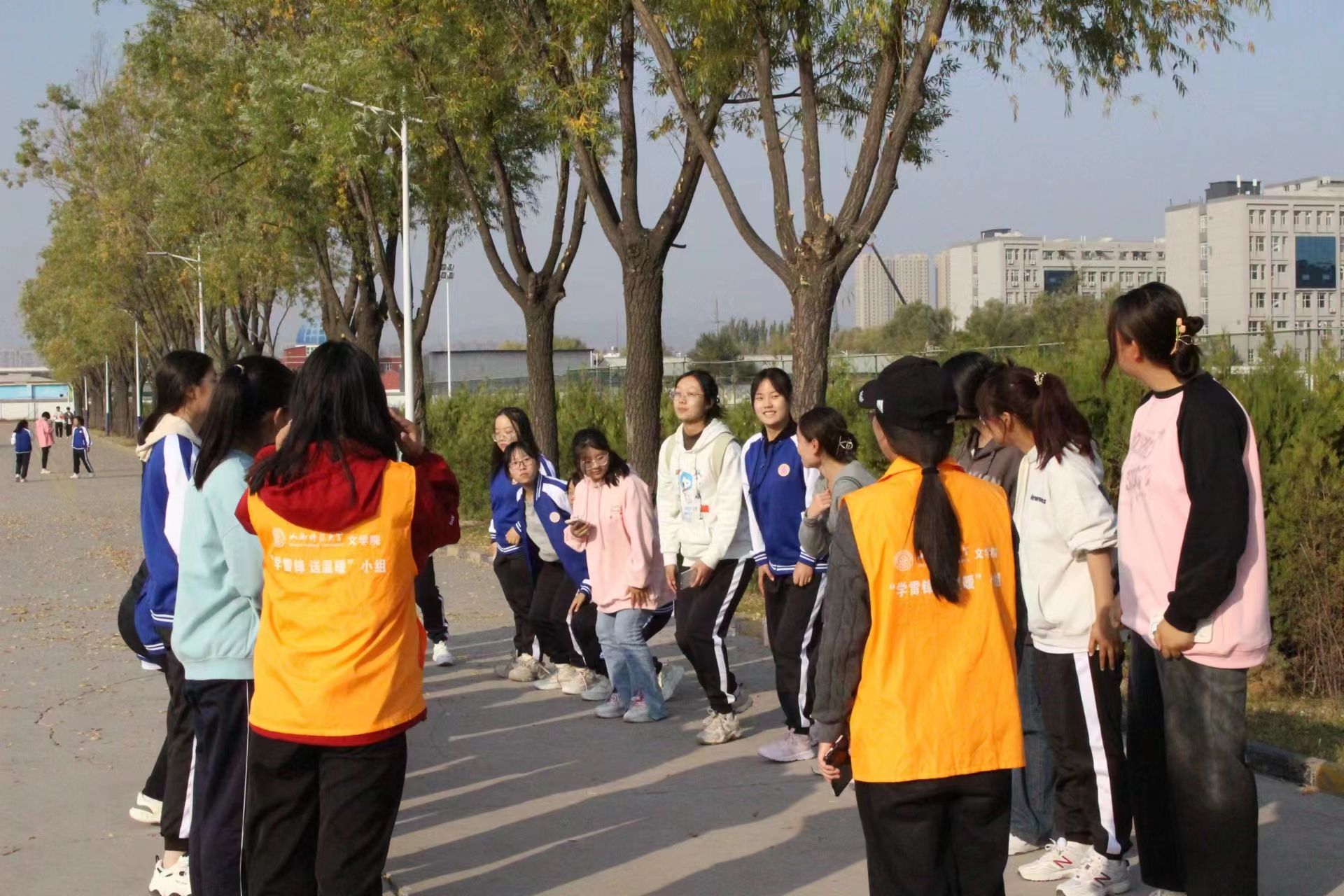 活动伊始,各个班级依次展示本班口号,进行赛前热身。同学们神采飞扬、精神抖擞,展现出积极向上的青春风采。竞技娱乐环节中,各班同学在素拓师的引导下,分组参加了“价值组合”“踩气球”“导演说”“扔沙包”“胡辣汤”和“倒着说”六个游戏,集体参加了“贴膏药”游戏。活动在同学们的欢声笑语中落下帷幕。