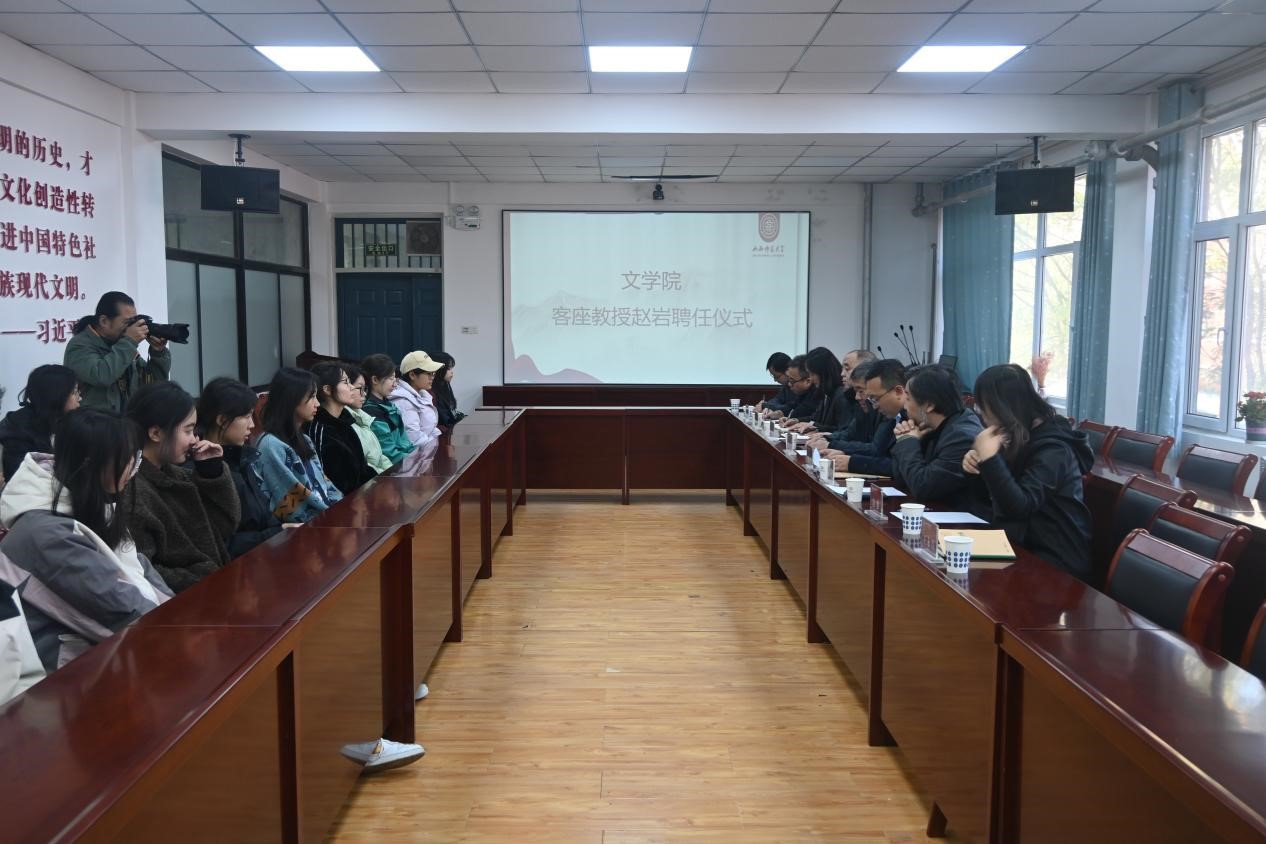 在聘任仪式上,钱成对赵岩教授的到来表示热烈欢迎,并向大家介绍了赵岩教授在文学领域的杰出贡献。随后,公司党委委员宣传部部长石斌为赵岩教授颁发聘书。赵岩教授对公司给予的这份荣誉表达衷心感谢,并围绕文学修养对新闻工作者的重要意义等议题与现场师生进行了深入交流,他表示今后会更加深入地承担工作责任,以另一种方式延续与师大的缘分,为公司作出新的贡献。