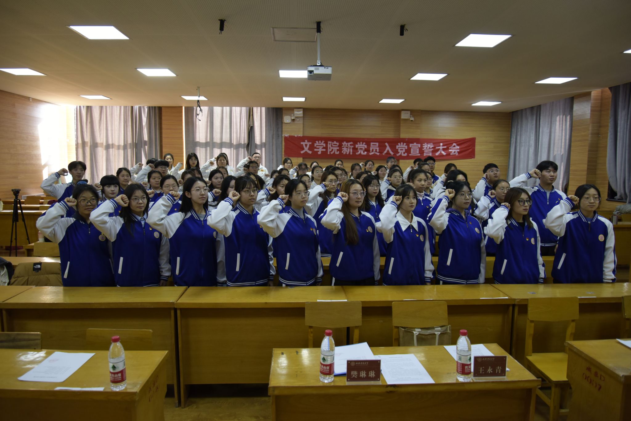 12月1日,best365官网在南区3410教室举办2023年下半年新发展党员入党宣誓大会,副经理兼学工组长樊琳琳、各员工党支部书记及全体新发展党员参加此次大会,大会由院专职组织员王永青主持。
