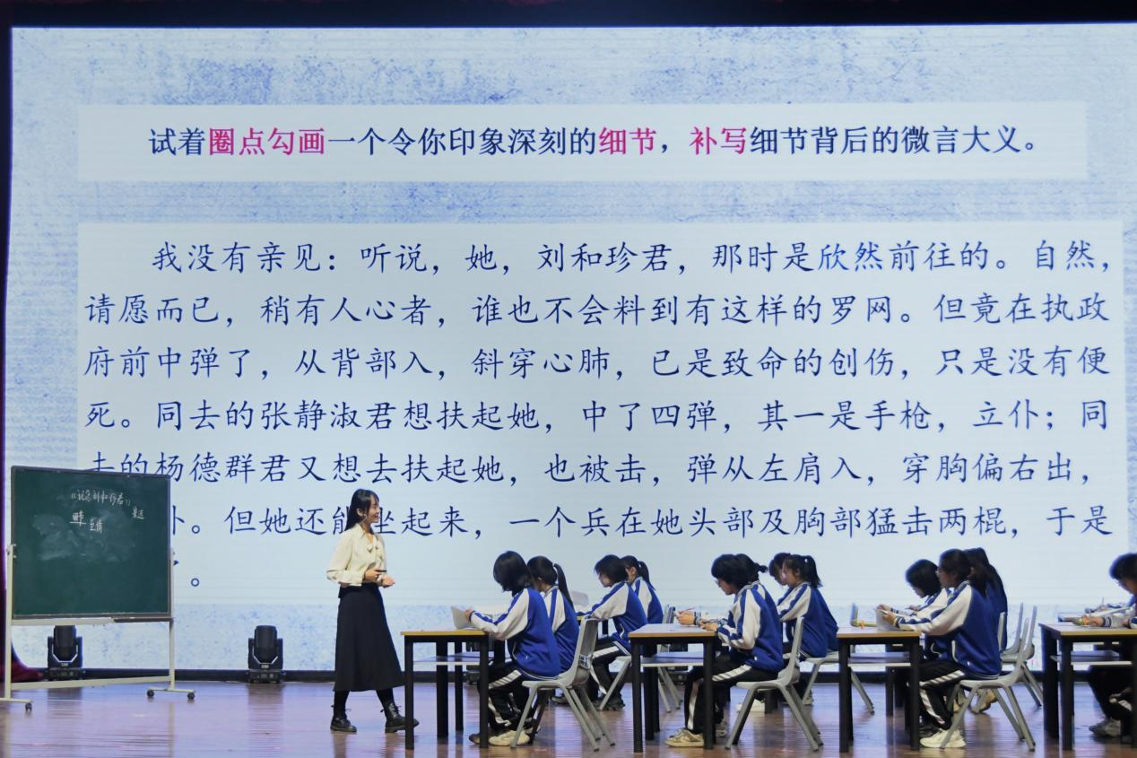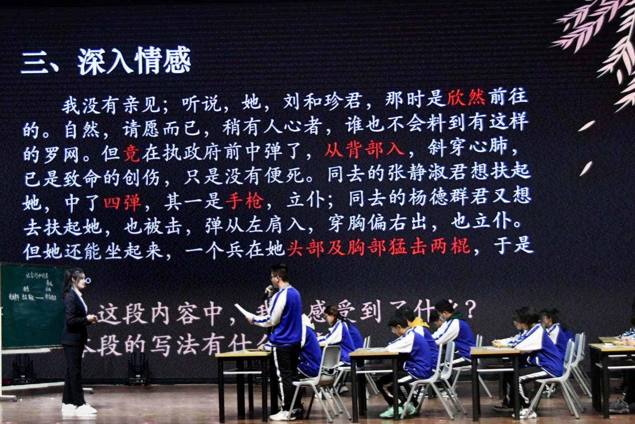 本次活动特邀北京市第十二中学教科研部主任、正高级教师威光宇作为主讲嘉宾,与华中师范大学王珂悦、陕西师范大学刘天宇及best365官网卓越师范生代表芝欣围绕鲁迅名篇《记念刘和珍君》进行现场教学、研讨交流。