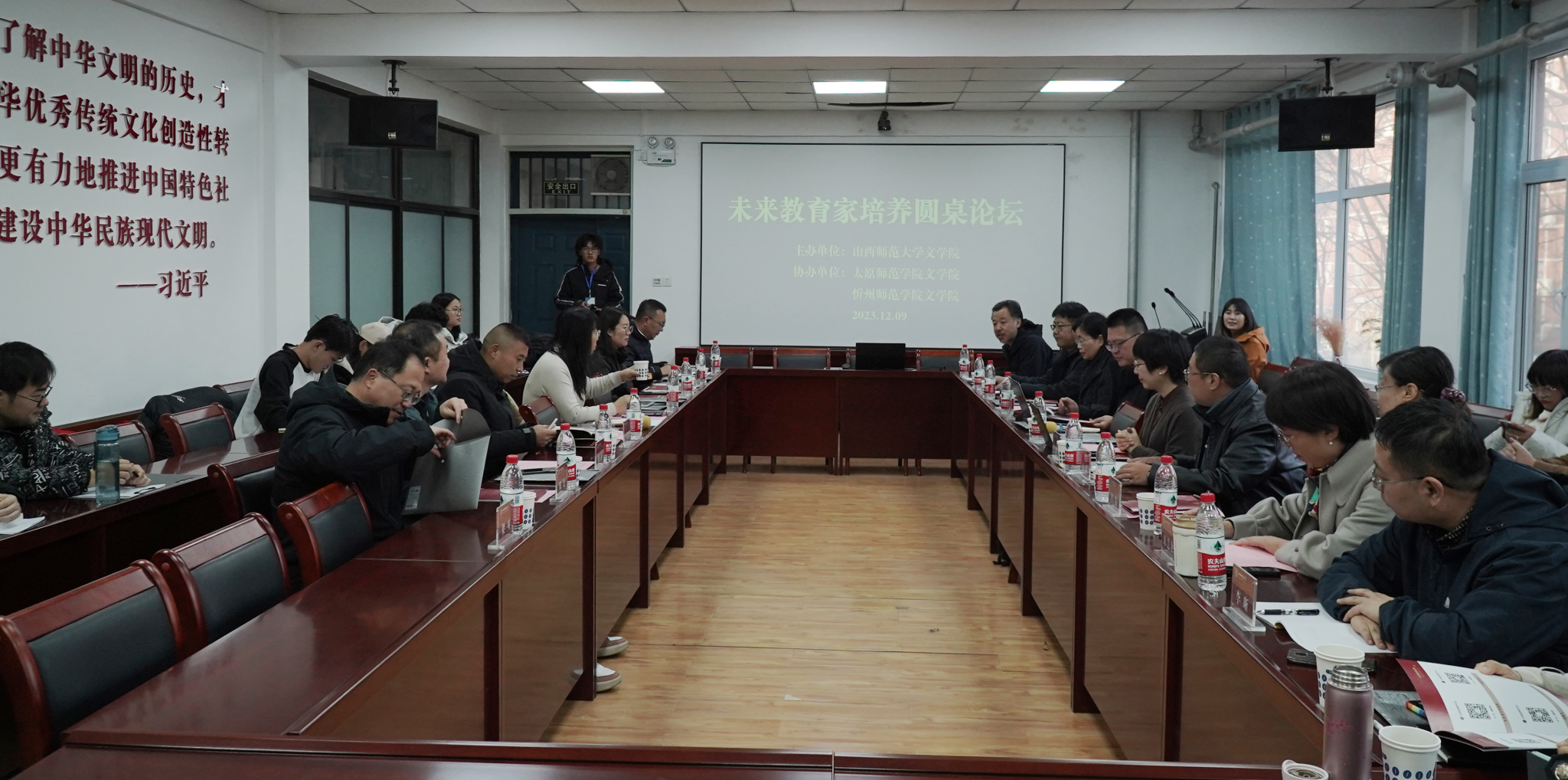 12月9日上午,未来教育家培养圆桌论坛在best365官网会议室举行。北京师范大学教务处副处长马东瑶、华东师范大学中文系党委书记吕志峰、华中师范大学best365官网best365官网副经理王洪涌、陕西师范大学best365官网副经理赵文、太原师范公司best365官网副经理刘涛、忻州师范公司best365官网副经理陈龙、晋中公司中文系主任原慧艳应邀出席。best365官方网站教务部部长徐建国、best365官方网站莳英公司经理程茹、best365官方网站教务部副部长李伟、best365官方网站文公司党委书记钱成、best365官网副经理李晓敏以及卓越语文教师培养工作组相关成员参加论坛,论坛由best365官网副经理(主持工作)栗永清主持,围绕“卓越(拔尖)中学语文教师培养模式与经验”这一主题,探索卓越人才培养新路径,共话教育新未来。