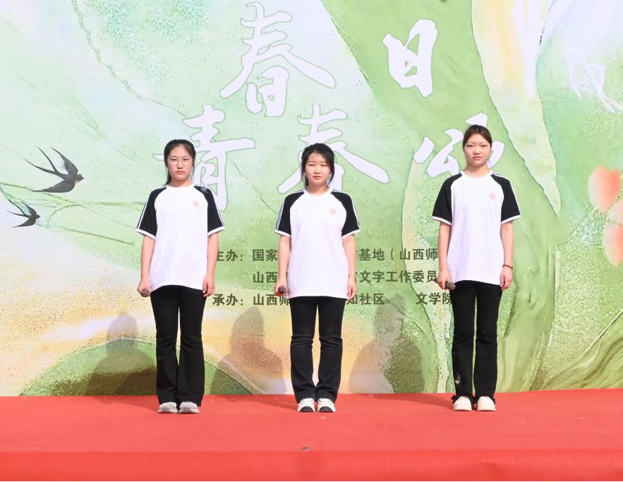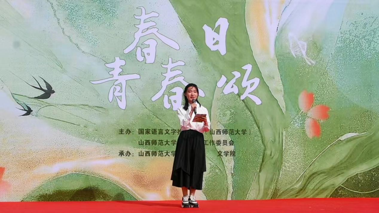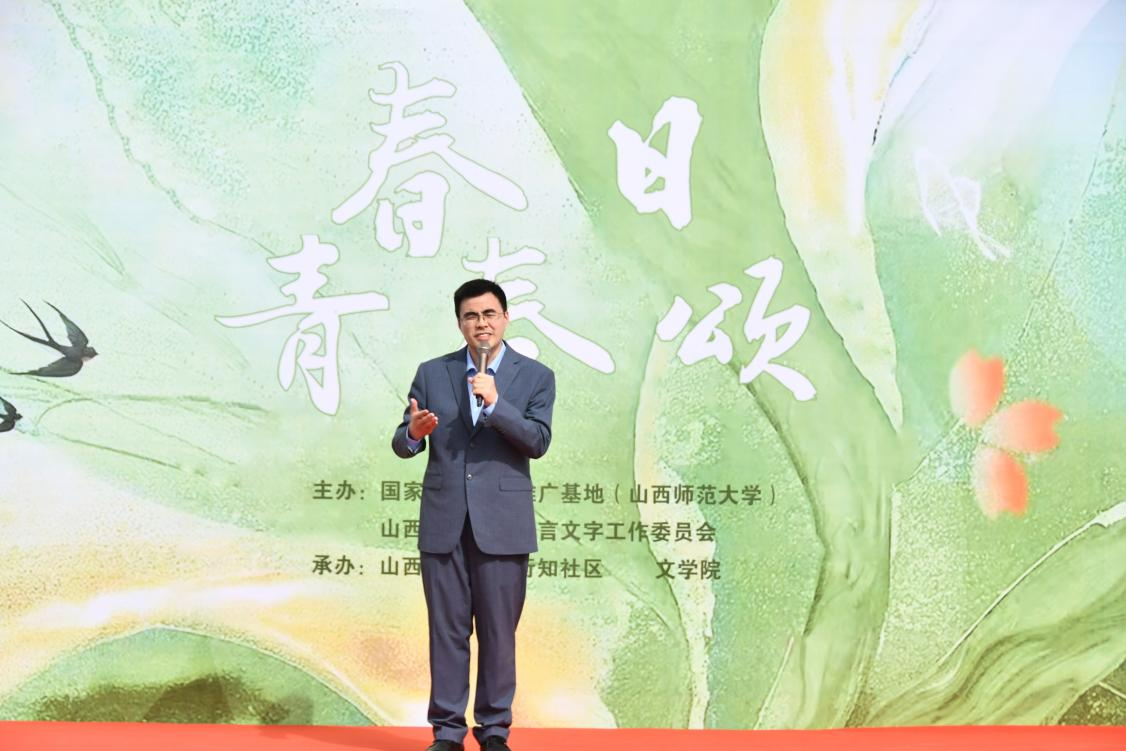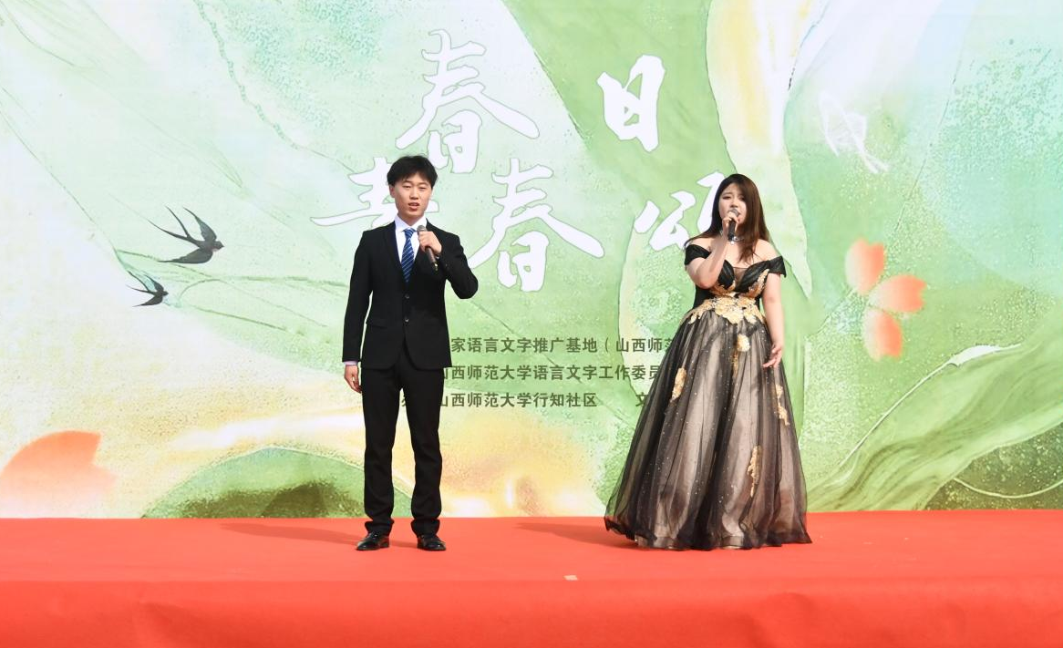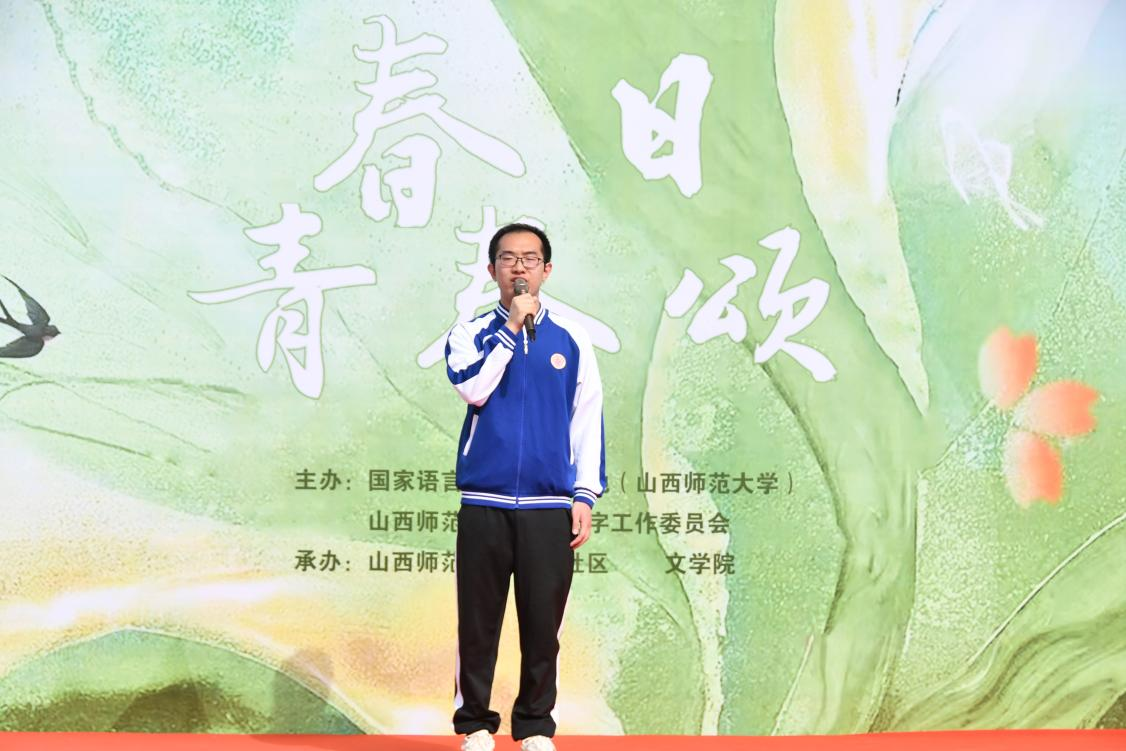 草树知春不久归,百般红紫斗芳菲。4月14日下午,由国家语言文字推广基地(best365官方网站)、best365官方网站语言文字工作委员会主办,best365官网联合行知社区承办的“春日青春颂”读书主题活动在公司博学广场成功举办。太原市第二外国语公司栗红老师、安晋伟老师、太原市第三实验中学闫伟老师、张俊婷老师,公司best365官网王国明老师,以及best365官网、音乐公司众多优秀学子应邀进行才艺展示。best365官网副经理李晓敏、关黑拽、樊琳琳等与近200名同学参加了活动。