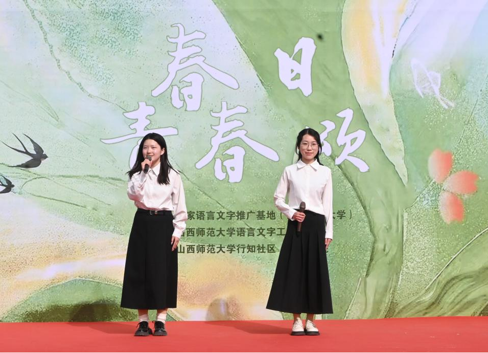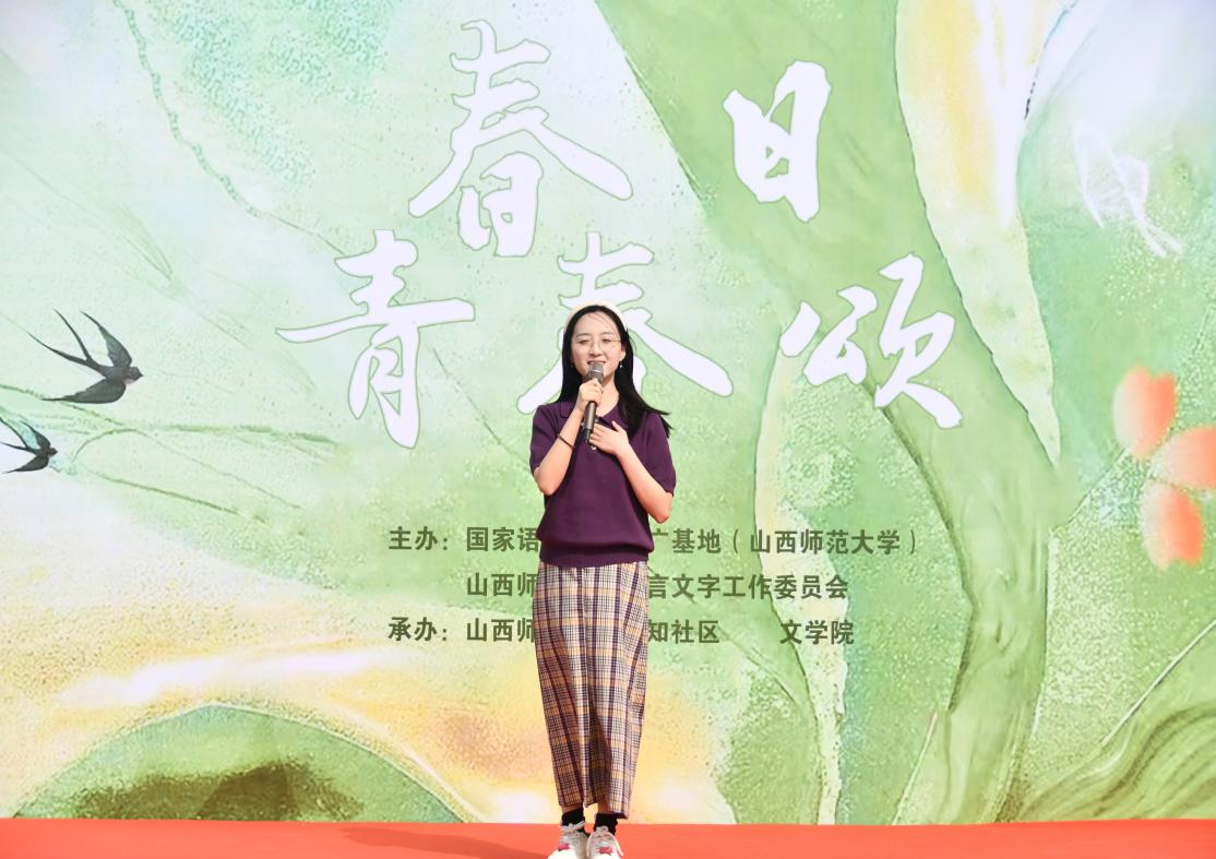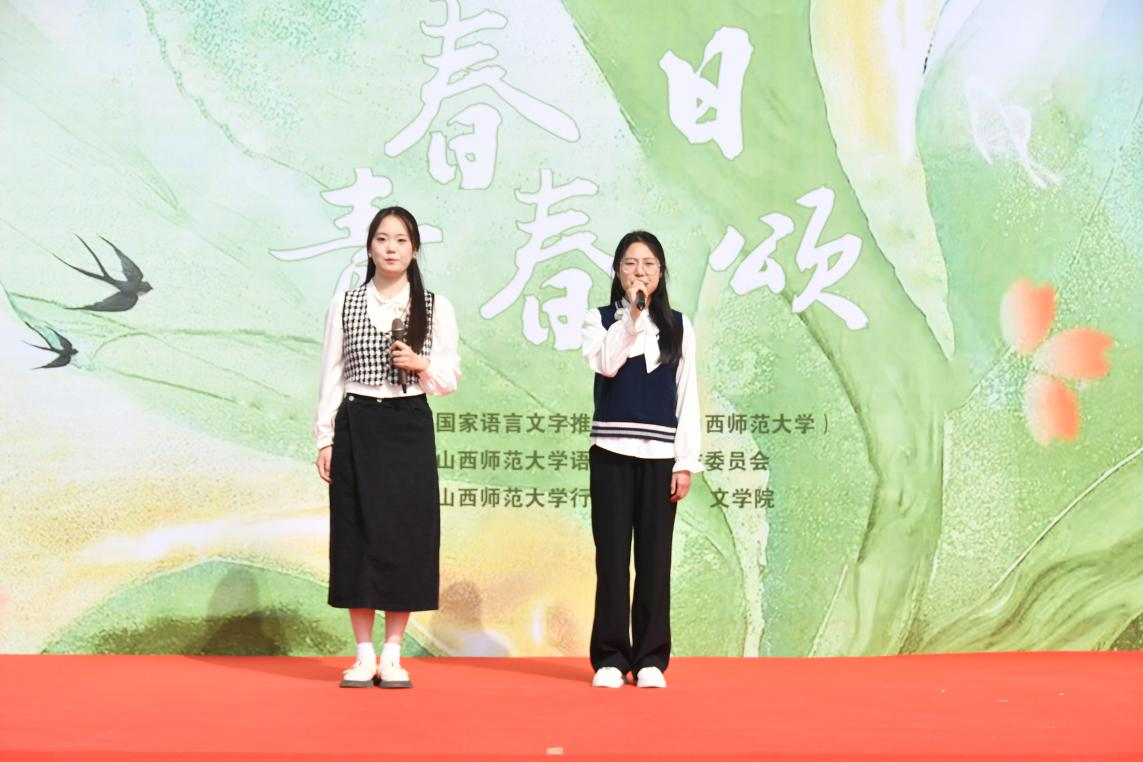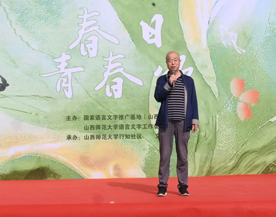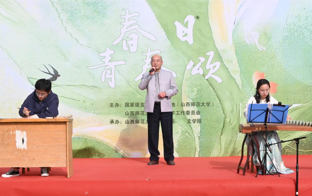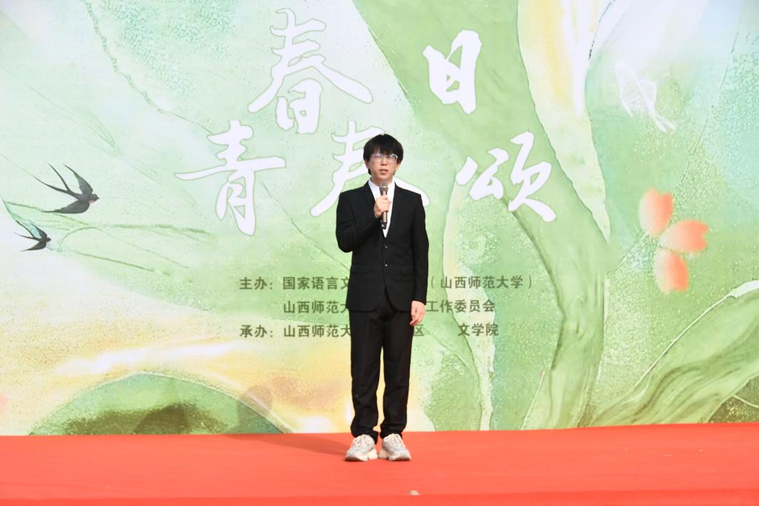 草树知春不久归,百般红紫斗芳菲。4月14日下午,由国家语言文字推广基地(best365官方网站)、best365官方网站语言文字工作委员会主办,best365官网联合行知社区承办的“春日青春颂”读书主题活动在公司博学广场成功举办。太原市第二外国语公司栗红老师、安晋伟老师、太原市第三实验中学闫伟老师、张俊婷老师,公司best365官网王国明老师,以及best365官网、音乐公司众多优秀学子应邀进行才艺展示。best365官网副经理李晓敏、关黑拽、樊琳琳等与近200名同学参加了活动。