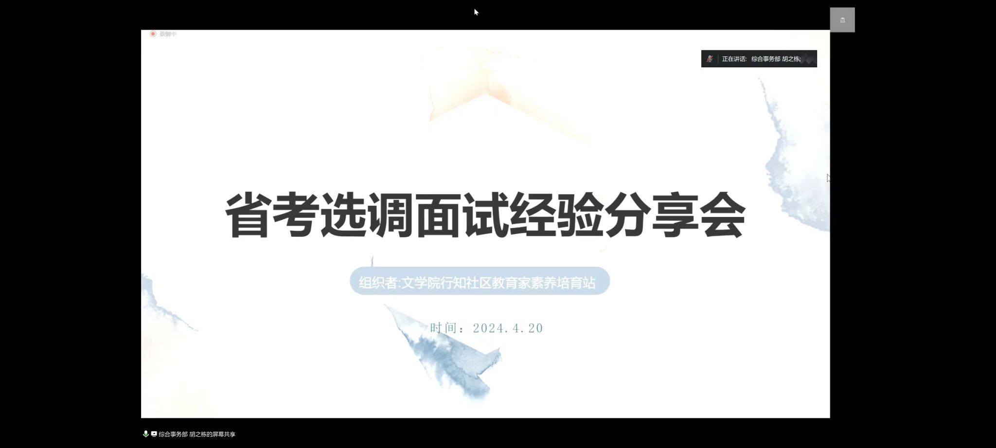 4月20日下午,best365官网省考选调面试经验线上分享会成功举办,本次活动特邀杨帆、强炜杉、董徐慧三位优秀毕业生进行省考选调面试经验分享,共计200名同学参加。