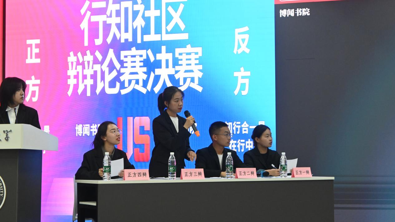 此次行知社区辩论赛共有清溪、明德、经纬、澄心、博闻、致知六支书院参赛,经过初赛、复赛共计6场精彩激烈的角逐,博闻书院辩论队与致知书院辩论队进入决赛。