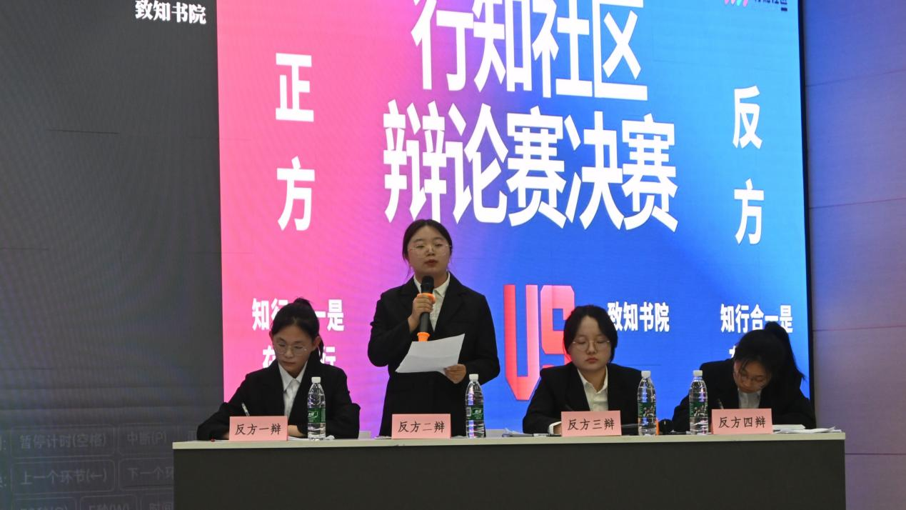 决赛辩题为“知行合一是在知中行还是行中知”。正方博闻书院与反方致知书院分别就“知行合一是在知中行”与“知行合一是在行中知”展开激烈辩论。正方强调“知中行”的普适性,反方则坚持实践出真知。双方唇枪舌剑,尤其在“学习本质”上展开交锋。最终,正方博闻书院以清晰的思路和精妙陈词赢得冠军,反方致知书院获亚军,展现了双方深厚的辩论功底和敏捷的思维。
