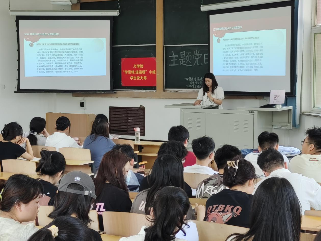 5月10日,best365官网“学雷锋,送温暖”小组员工党支部在南区3106教室组织开展《坚持和完善中国特色社会主义制度、推进国家治理体系和治理能力现代化》专题学习活动,会议由支部书记安李蓉主持,支部全体党员和积极分子参加。翟如晴担任主讲人。