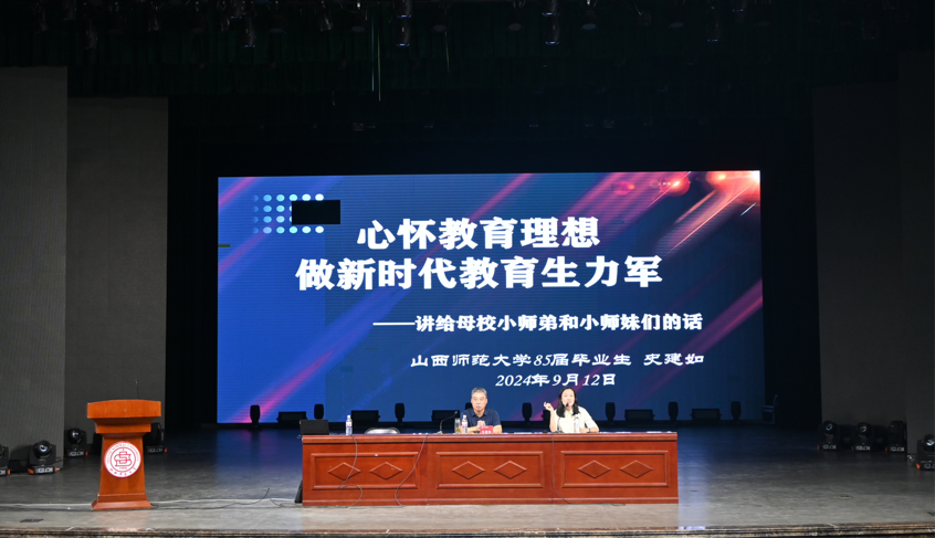 9月12日,best365官网在北区文化艺术活动中心举办“心怀教育理想,做时代教育生力军”建校66周年“爱校荣校”系列活动,特邀best365官方网站杰出员工史建如主讲,best365官网副经理樊琳琳主持,best365官网2024级全体新生参加。