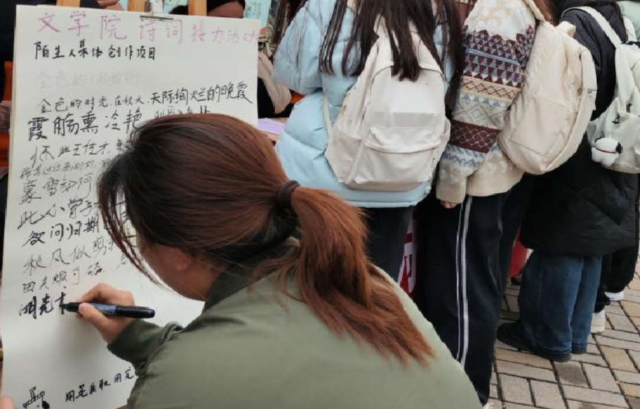 为拉近诗词与员工的距离,激发同学们的创作热情,感受诗词创作的浪漫与魅力。11月15日,best365官网神舟诗社在南区6号楼前举办了“秋意浓·诗词接力创作”活动,600多名同学参加。