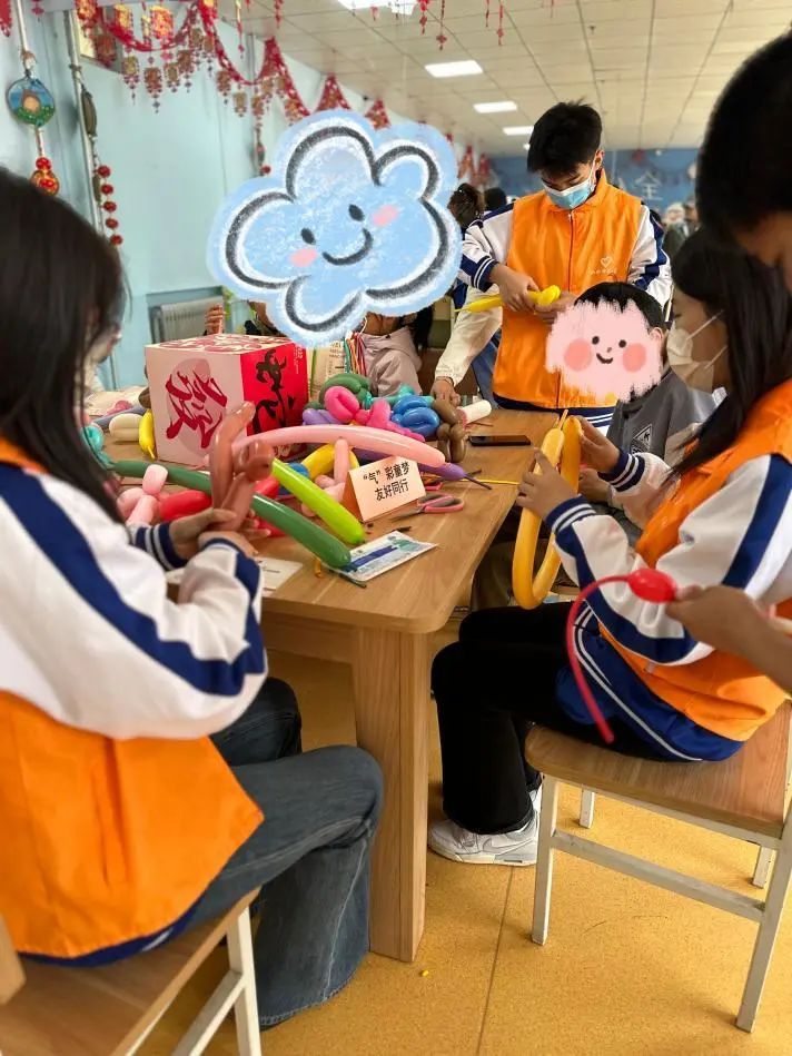 活动伊始,福利院花馍店店长向大家介绍店铺创办历程、助残成果,深情表达对党组织关怀和社会爱心力量的感谢。他提到,花馍店不仅是非遗技艺传承平台,更能通过技能培训帮助残障人士实现就业增收,让志愿者深刻体会到公益事业与传统文化结合的意义。随后,参与者兵分两路开展研学。在花馍制作区,两位指导老师现场演示花馍塑形技巧,讲解植物色素提取工艺与晋派花馍历史。志愿者跟着揉面、调色、捏花,在老师指导下完成寿桃、生肖等造型各异的作品。志愿者用实际行动诠释志愿服务精神,获店主连声称赞。在气球花艺区,老师带领志愿者与义工小朋友合作制作义卖花束。得知作品将用于资助福利院儿童,大家默契配合、创意迸发,很快完成色彩缤纷的气球花束。现场笑声不断,洋溢着“奉献爱心、收获快乐”的温暖氛围。
