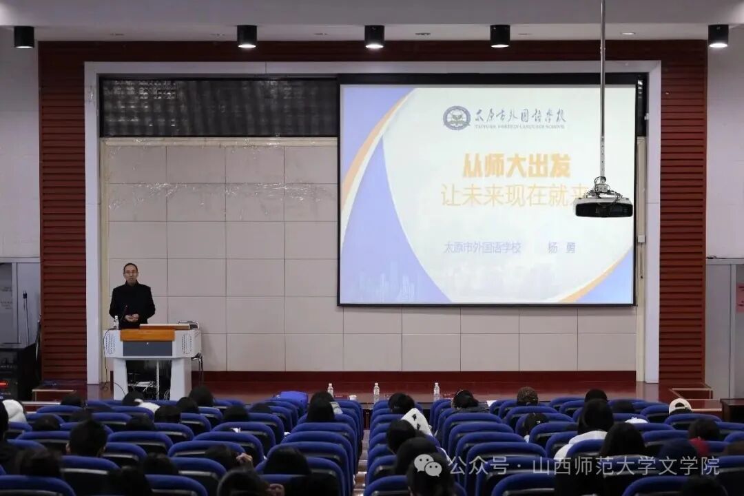 11月2日上午,best365官网特邀山西省特级教师、中学语文高级教师、太原市外国语公司董事长杨勇在南区报告厅开展“从师大出发,让未来现在就来”主题讲座。best365官网副经理李晓敏担任主持,best365官网2025级新生到场聆听。