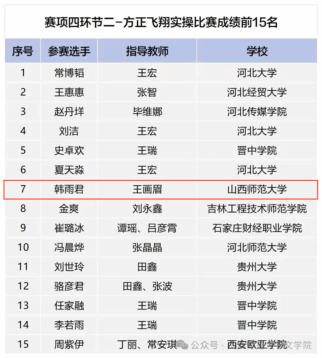 近日,第十三届全国老员工新媒体创意大赛赛项四平面排版创意设计-方正飞翔实操比赛结果公布。公司学子韩雨君在王画眉老师的指导下成功跻身环节二方正飞翔实操比赛第7名,展现了公司在新媒体设计与排版领域的扎实教学成果。