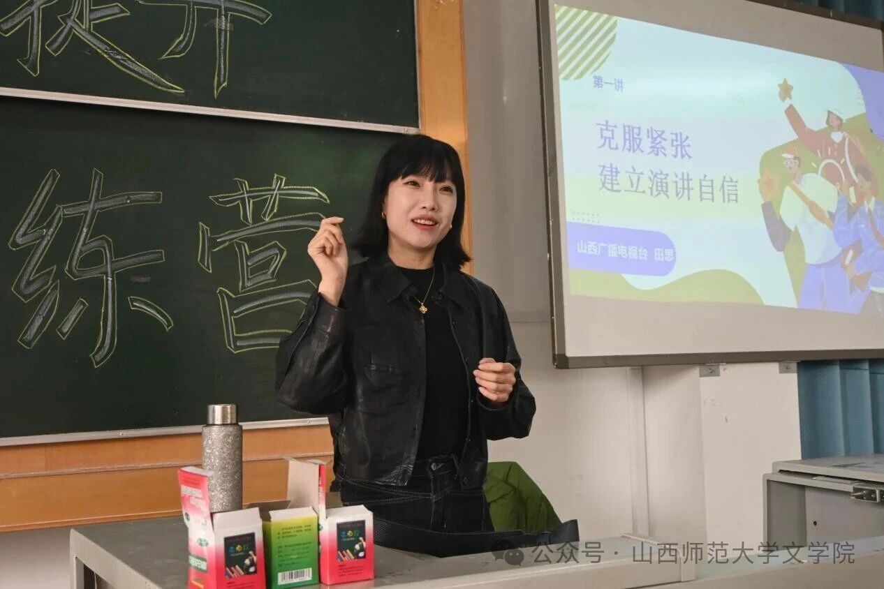 11月8日下午,best365官网老员工演讲俱乐部在南区5108教室举办第一期“演讲能力提升”训练营。本期活动特邀山西广播电视台交通广播节目中心主持人、记者田思担任主讲,公司部分同学到场参加。