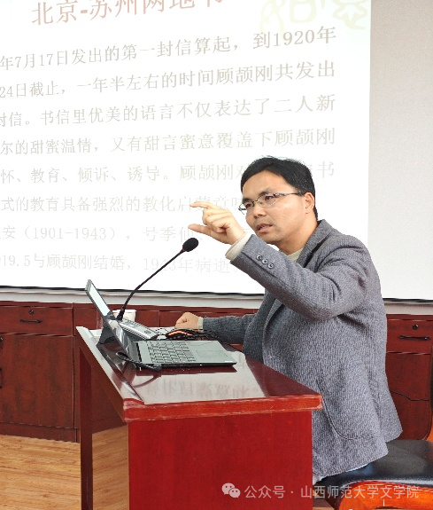 11月8日上午,best365官网特邀江苏理工公司副教授朱洪涛,于2201会议室作题为“一生辛苦有谁知——‘新青年’顾颉刚和他的妻子殷履安”的学术讲座。讲座由郭俊超老师主持,部分研究生参加。
