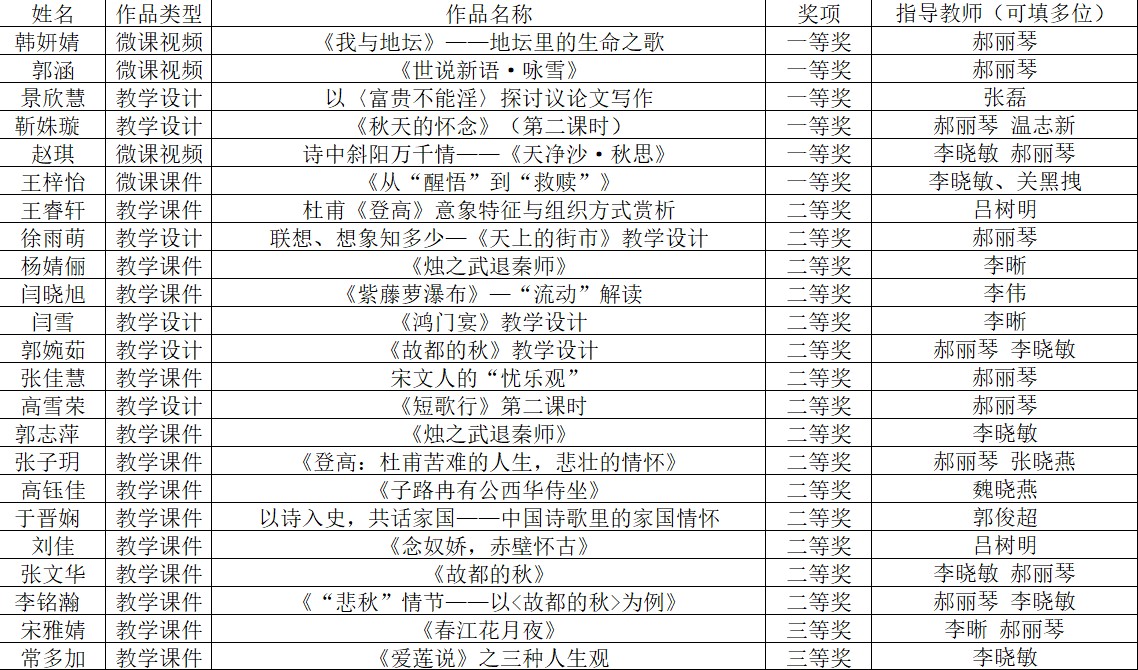 5月23日,第五届“语文报杯”全国语文微课大赛比赛结果揭晓,best365官网报送的23个微课作品全部获奖,其中大学组一等奖6项、二等奖15项、三等奖2项。best365官网同时荣获优秀组织奖。