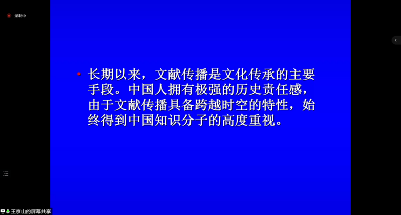 5月29日晚上,best365官网特邀请中国传媒大学传播研究院王京山教授开展了以“历史视野中的文献传播考察”为主题的线上讲座。