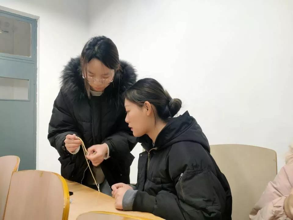 活动在悠扬的音乐中进行,活动主持人首先介绍了活动的规则流程,通过播放宣传视频介绍了编织的相关知识,并将编织材料发放给同学们。在编织小老师的指导下,同学们纷纷兴趣盎然地研究起自己手中的绳线。通过老师教授的方法,一条条漂亮的手链、围巾,一个个色彩丰富的香囊被心灵手巧的同学们编织了出来。活动结束后,大家进行了合影留念,同学们纷纷表示编织十分有趣,为自己又能学到一门手艺而开心。