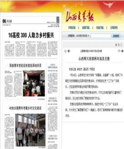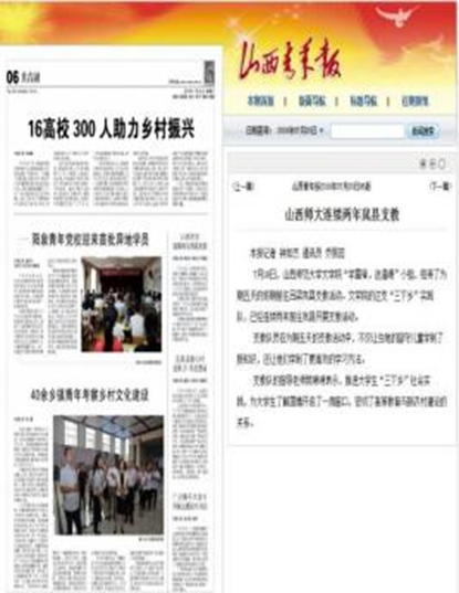 2018年7月20日,刊登消息《山西师大连续两年岚县支教》。
