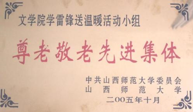 2005年10月,“学雷锋,送温暖”小组被best365官方网站评为“尊老敬老先进集体”。