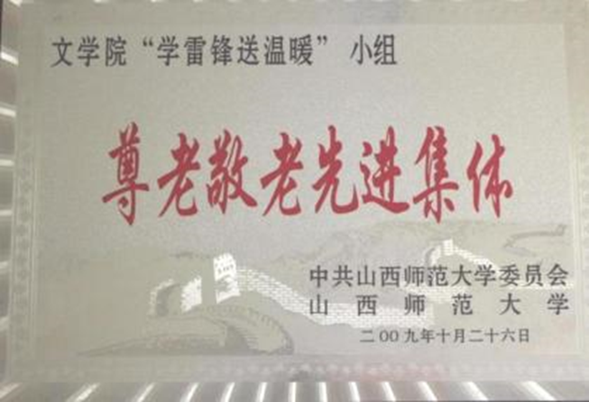 2009年10月,“学雷锋,送温暖”小组被best365官方网站评为“尊老敬老先进集体”。